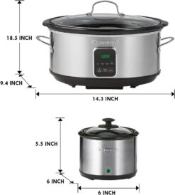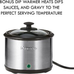 - Dipper for Sauces: All-in-one slow-cooker set includes a bonus dip warmer with LED power indicator that heats dips, sauces, and gravy to the perfect temperature and goes straight from kitchen to table for serving