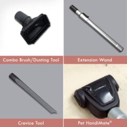 - Includes a combination dusting and crevice tool for base boards and tight corners, a Pet Handi-Mate(R) eliminates pet hair and dander, and a telescoping wand helps you reach up to 10 feet to those awkward corners, steep stairways and high shelves for whole home cleaning.