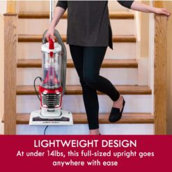 At under 14lbs, this full-sized upright goes anywhere with ease