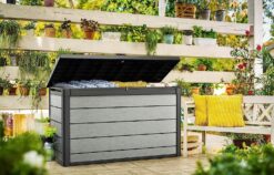 It comes with a generous interior that can hold pool equipment, gardening tools, large cushions, or other accessories.