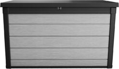 Keter Denali 200 Gallon Resin Large Deck Box-Organization and Storage for Patio Furniture, Outdoor Cushions, Garden Tools and Pool Toys, Grey & Black