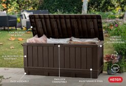 Keep your peace of mind when storing your personal items in the Kentwood deck box. Because it comes with a lockable latch, adding your own padlock is a snap.