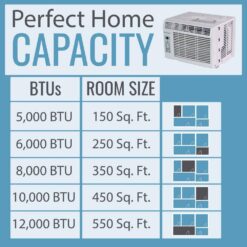 | BTU Cooling Rating (DOE SACC) | 8000 BTU | BTU Heat Rating | No Heat |