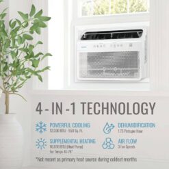 - 12,000 BTU window air conditioner with 10,000 BTU heat pump