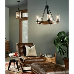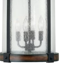 Kichler  Barrington 4-Light Distressed Black and Wood Tone Rustic Seeded Glass Cylinder Pendant Light