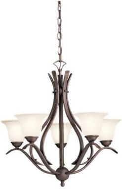 Kichler Dover 23″ 5 Light Chandelier with Alabaster Swirl Glass in Tannery Bronze