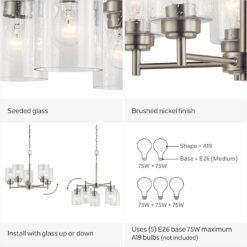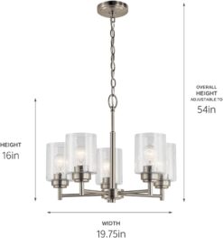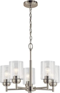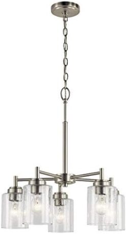 Kichler Winslow 19.75″ Chandelier in Brushed Nickel, 5-Light Chandelier for Dining Room, Living Room, or Bedroom, Clear Seeded Glass, (19.75″ W x 16″ H), 44030NI