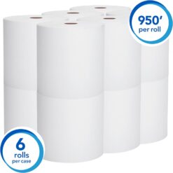 Kimberly-Clark Scott® Essential High Capacity Hard Roll Paper Towels (02000), 1.75” Core, White, 950′ / Roll, 6 Rolls / Convenience Case, 5,700’ / Case