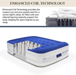 - KING KOIL LUXURY QUEEN AIR MATTRESS WITH A 1-YEAR WARRANTY DIRECT FROM THE MANUFACTURER: Experience unparalleled comfort with our Queen-sized airbed, featuring a luxurious pillow top, soft flocking layer and enhanced coil-beam construction for maximum support. Built to last with durable, waterproof, and puncture-resistant materials, this air mattress is your go-to solution for a restful night’s sleep.