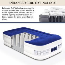 - KING KOIL’S COMMITMENT TO QUALITY & CUSTOMER SATISFACTION: With superior air retention, quick setup, and a sophisticated design, our King Koil twin air mattress embodies the pinnacle of sleep technology, underscoring our dedication to your satisfaction and high-quality standards.