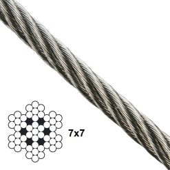 KingChain galvanized aircraft cables are used for many material handling applications and have typical home uses for garage door cables, winch lines, tie-downs, dog runs, hanging signs, and guy wires for flagpoles. KingChain aircraft cable is made in accordance with US Federal Specification RR-W-410D. The cable is hot-dipped galvanized for long lasting durability and moderate corrosion resistance. The 7×7 construction consists of 7 individual wires laid in a spiral around a center King wire to form a strand. Seven strands are then wound together to form a cable. This construction provides good strength, good flexibility and good abrasion resistance. This cable has a Safe Working Load (SWL) of 340 lbs. (154 kg). Its breaking strength is 5 times the SWL (design factor 5:1). Any breaking strength ratings are listed for comparison purposes only. Actual operating loads may vary but should not exceed the recommended design factor of 20% of the products breaking strength. Not intended for aircraft use.