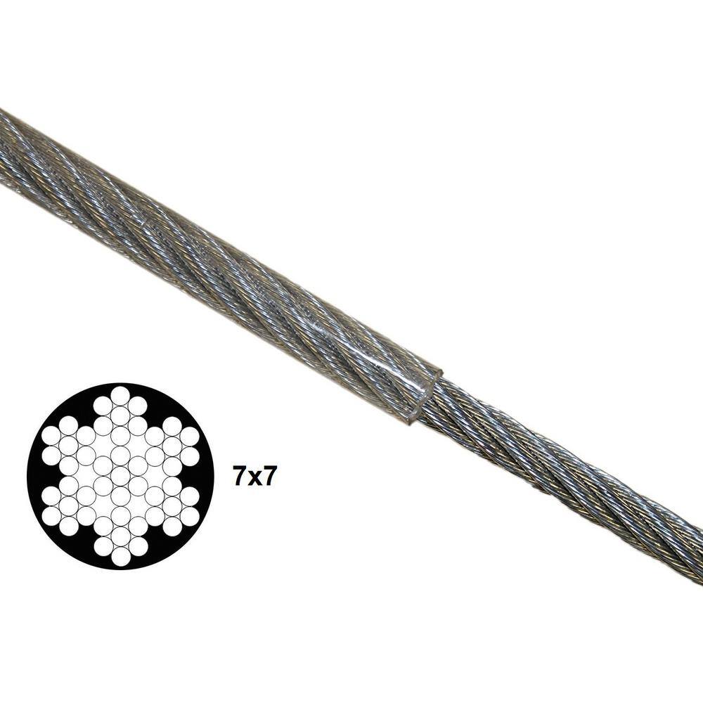 - 1/8 in. cable diameter, 3/16 in. overall diameter, 7×7 construction