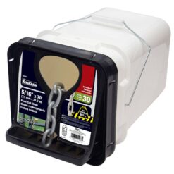 - Bulk packed in a large pail with a lid that provides storage for the chain tail after a length is cut