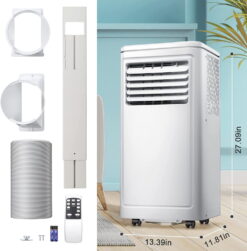 KISSAIR 6000BTU (10000 BTU ASHARE) Portable Air Conditioner, Remote Control, Cools 300sq. ft, Quiet Operation, Window Fan,24H Timer, 2 Fan Speed for Bedroom Office Home Dorm-White
