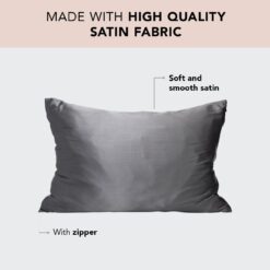 Kitsch Satin Pillowcase with Zipper for Hair and Skin Queen, Softer Than Silk Pillow Cases, 2 Pack Cooling Pillow Covers, Machine Washable, Satin Pillow Cases Standard Size Set of 2 19″x26″ (Charcoal)