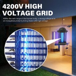 - Effective Physical Bug zapper: Outdoor bug zapper uses blue-violet light attracts mosquitoes, gnats, aedes, midges, moths, flies, fruit flies, wasps and other flying insects, then the high-voltage grids will electrocute these insects immediately.