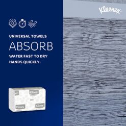- 150 Sheets/Pack, 16 Kleenex Multifold Paper Towel Packs/Case; 2,400 Sheets/Case; 1-Ply; 9.2″ x 9.4″ sheets; White; fits universal multi-fold towel dispensers