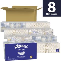 Kleenex Ultra Soft Facial Tissues, 8 Flat Boxes, 120 Tissues per Box, Designed for runny noses and watery eyes, Ultra Soft 3-ply tissues provide a perfect balance of unbeatable softness and strength to comfort skin and help protect your hands.