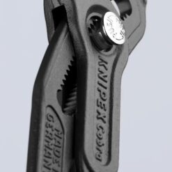 No more time-consuming test-adjusting to achieve the correct size. With the KNIPEX Cobra water pump pliers, you can simply position the upper jaw to the workpiece, push the button, and close the lower jaw. And you’ll also be able to say goodbye to blood blisters you get with other gripping pliers. With safety its first priority, KNIPEX has designed a built-in pinch guard that prevents blood blisters on your hand. The unique self-locking adjustment and induction hardened gripping teeth means that once it’s set, it stays. There’s no slipping and no need to waste strength squeezing the pliers — ensuring operator safety and more efficient work. Cobra’s unique jaw configuration can grip any shape object — flat, round, hex, or square. It also eliminates nut burring to avoid stripping pipes, nuts, or bolts. Additionally, the Cobra’s newly redesigned adjustment provides 30% more gripping capacity than previous models. A simple push of the patented push button adjustment maintains jaw size setting and gives you the correct size opening every time. Just position the upper jaw to the workpiece, push the button, adjust the opening, and close the lower jaw. And it’s easily done with just one hand for trouble-free operation in confined spaces. Cobra water pump pliers are constructed from chrome vanadium electric steel, an innovative high alloy, oil tempered steel that ensures longevity. And their thin head design helps you get into spaces other pliers can’t, so there’s no need to change tools when working in tight confines.