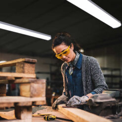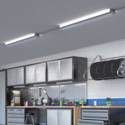 The Koda Multi-Directional Shop Light has all the features you need to brighten up your workshop, garage, basement, and so much more. The Ultra-Bright 8000 Lumen lightweight, versatile, pre-assembled fixture has the flexibility to be surface or suspended mounted. You can link up to 6 fixtures in a series giving you the power to light up the work area the way you want it. With a flip of the switch, you can select which lighting mode works best for you – Ambient, Main, or Full Brightness. For added convenience, this LED shop light includes a 5 ft. plug-in power cord, On/Off chain, hanging accessories, and convenience outlet.