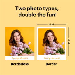 - Two Photo Types: It is possible to print both bordered and borderless pictures with the Kodak Mini Shot 3 Retro photo printer. With this instant camera, you can create lasting memories by writing down your memories in the border type. You can print the borderless type of photo if you want to have them in a larger size.
