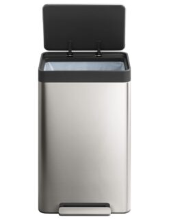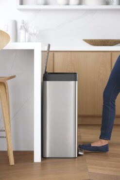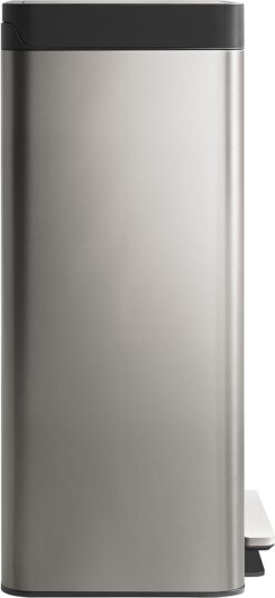 - Quiet-Close Lid: Trash bin lid closes quietly and gently without slamming, stainless steel finish