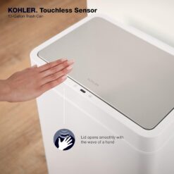 KOHLER 23825-STW 13 Gallon SensorCan, Automatic Touchless Motion Sensor Kitchen Trash Can with Soft Close Lid, White Stainless Steel