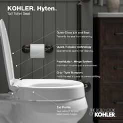 KOHLER 25875-0 Hyten Elevated Quiet-Close Elongated Toilet Seat, Contoured Seat with Grip-Tight Bumpers, Quick-Attach Hardware, White