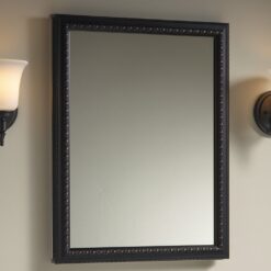 Showcasing elegant bronze detailing on its frame, this wall-mounted medicine cabinet features a reversible door that can be installed with a left- or right-hand hinge. Mirrors are positioned on the front and back of the door as well as the interior back of the cabinet. 2 Adjustable tempered-glass shelves hold your toiletries and bath items. Durable aluminum construction makes this cabinet rust- and rot-resistant.
