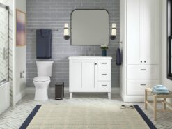 Crafted with thoughtful details and smart functionality, the KOHLER® step trash can collection will simplify your daily routine at home and meet the style demands of its surroundings. The 2.5-gallon slim step trash can is ideal for small spaces, such as in a home office or next to a toilet. It opens with a sturdy foot pedal, allowing for hands-free operation. The functional design allows you to use any plastic shopping bag, thanks to tabs that secure the bag in place.