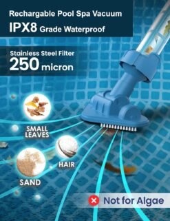- CORDLESS RECHARGEABLE: The USB rechargeable battery operated portable Cordless pool cleaner vacuum gives you 30 minutes of cleaning per charge, enough to clean the whole spa and hot tub for more than 2 times!