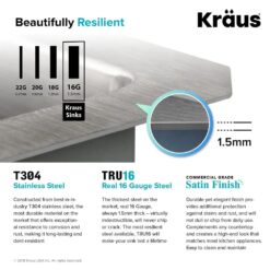 KRAUS kitchen sinks are known for excellent quality and sturdy construction. The Premier Collection sinks are the perfect combination of quality, durability and convenience. Made from durable T-304 stainless steel, this undermount sink can easily stand up to constant use and handle your toughest kitchen tasks.