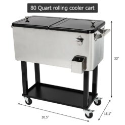Ktaxon 80QT Rolling Party Iron Spray Cooler Cart Ice Bee Chest Patio Warm Shelf