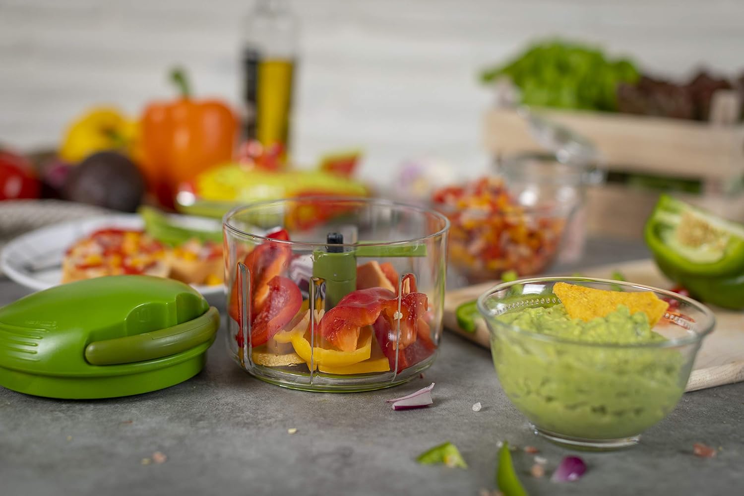 - SLICE AND DICE FOOD WITHIN SECONDS – veggies, fruit, nuts, garlic, eggs and more are sliced with just a few pulls of the cord so you can make your own fruit bowl, salads, dips, sauces and other favourite recipes in a flash