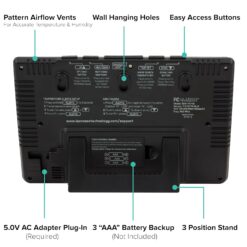 - [ALARM WITH SNOOZE] Time alarm with 10 minute snooze feature; 5V power adapter for full feature display (optional backup, requires 3 AAA alkaline batteries)