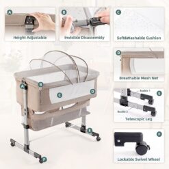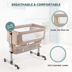 - Breathable & Comfortable: The bedside bassinet was manufactured with soft skin-friendly fabric with both sides breathable mesh design for breathability and visibility. And the removable and machine-washable mattress is soft, pressure-resistant for comfort.