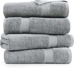 LANE LINEN Bath Sheets Bathroom Towel Set of 4, 100% Cotton Bath Sheet Towels for Adult, Ultra Soft & Highly Absorbent Grey Large Bath Towels, Shower Towels Bath Sheet Sets for Bathroom – 35″x66″