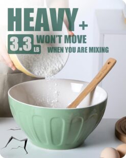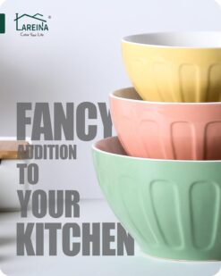 - Space Saving: Lareina deep nesting mixing bowls for baking are stackable. These ceramic serving bowls will take up little space in your cabinet. They will work out well to make your kitchen tidy and clean