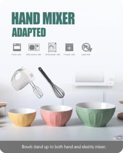 - Heavy Duty: Lareina multicolored porcelain mixing bowl set in kitchen is of high quality. They are heavy enough for stirring without being too heavy to use every day. This set of nesting bowls are substantial that goes well with the electric hand mixer and will last forever