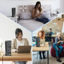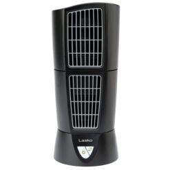 Lasko’s space-saving PLATINUM Desktop Wind Tower® Oscillating Multi-Directional fan, in black, is ideal for small to medium spaces. The top section of this desk fan pivots so you can aim airflow in two directions, plus the oscillation option moves the entire fan for widespread breeze coverage. Features front-facing electronic controls and 3 refreshing speeds. Includes Lasko’s trusted, fused safety plug and complies with ETL certifications and standards. Easily move this portable fan from room to room with the built-in carry handle. Features a 6-foot power cord so it will reach the nearest outlet. Comes fully assembled and ready to use. 1-year limited warranty.