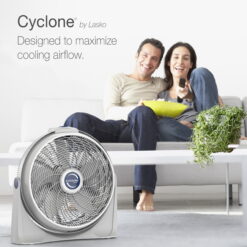The Lasko 20″ Cyclone Air Circulator Fan is a great choice for an all-purpose floor fan. This fan is a great addition to boost your air conditioning circulation. This fan’s 3 high-performance speeds, aerodynamic fan blades, and a special swirling grill design combine for power and performance matched only by a cyclone itself! The adjustable fan-head rotates up to 90 degrees and then locks into place for precision comfort. This fully assembled fan is portable and simple to use with controls located on top of its easy-carry handle. Easily converts from wall to floor use. Comes fully assembled. 1-year limited warranty.