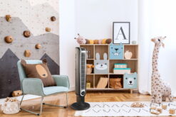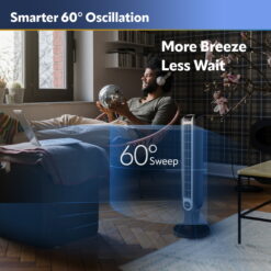 Feeling cool is a breeze with this 3-speed Oscillating Tower Fan with Remote Control by Lasko. This attractive, yet highly functional 36″ fan takes up minimal space and is ideal for any home or home office. Includes an automatic programmable timer that goes up to 7 hours, plus a convenient remote control to easily operate the unit from the comfort of your chair. Features a trusted, safety fuse technology for peace of mind and a carry handle for portability. Simple base assembly is required. 1 year limited warranty.