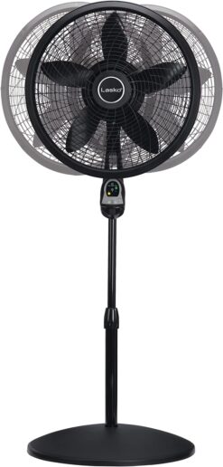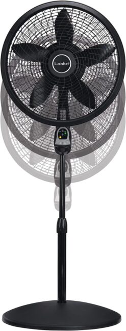 Lasko Oscillating Cyclone Pedestal Fan, Adjustable Height, Timer, Remote Control, 3 Speeds, for Bedroom, Living Room, Home Office, 18″, Black, 1843