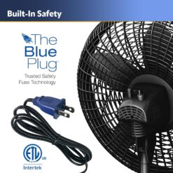 - 【BUILT-IN SAFETY】The Lasko Blue Plug is an important safety feature on all Lasko residential fans, the plug is designed to cut off electric current to the fan if it detects a potentially hazardous electrical fault in the fan’s motor or power supply