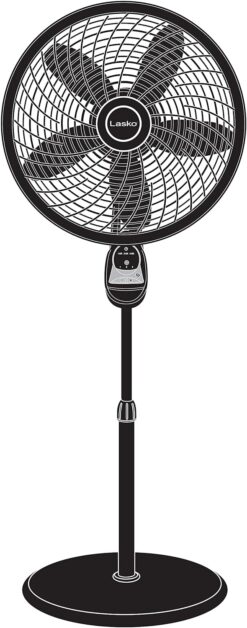 The ideal fan for living rooms, bedrooms & more. With 3 quiet speeds and widespread oscillation, this fan will help you feel cooler and more comfortable throughout the year. Great looking and capable of cooling the largest home spaces, this black pedestal fan from Lasko features a tilt-back fan head for directional airflow control and fully-adjustable height up to 54″. The included remote is easy to use and allows you to control the power, fan speed, and timer functions. Simple ‘no tool’ assembly.