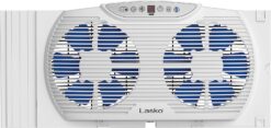 Lasko W09560 Bluetooth Enabled Twin 9-Inch Window Fan with Independent Electrically Reversible Intake & Exhaust Motors with Thermostat and Timer for Bedroom Indoor Home Use, White