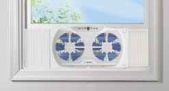 - 【EASY TO INSTALL】Comes fully assembled and ready to use. Simply place fan in center of open window area, extend side panels to securely fit in window track, then lower window and secure behind window grabber on top of fan. Fits windows from 24” to 32” wide and 12” high and larger. Ideal for most double hung, casement and sliding windows.