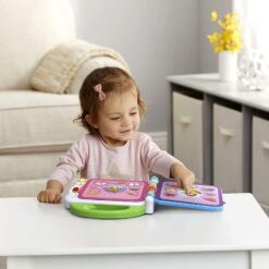Explore the colorful pages and new vocabulary in the Learning Friends 100 Words Book and touch each picture to hear the animals say toddler-appropriate words along with exciting facts and sound effects. Immerse your child in bilingual play by sliding the language switch to hear the words, songs and instructions in Spanish. Touch the pictures to hear silly sound effects in Fun Sounds mode or press the light-up star button to hear two learning songs. Discover new vocabulary with cute learning friends! Intended for ages 18+ months.