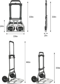 - VERSATILE & EASY STORAGE: This dolly is only 2 inches thick when folded flat. It can be easily placed in the car, garage, under the bed, in the gap of the cabinet, etc. For example, it will save you a lot of energy when you go to the supermarket to buy or move or attend a fair.