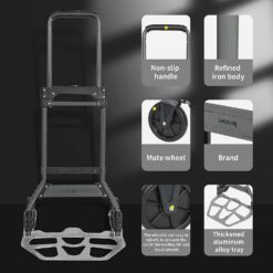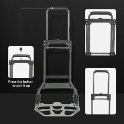 - COMFORTABLE HANDLE: This portable dolly does not require assembly. Be careful to keep the Folding Cart balanced as you use it. Avoid carrying heavy loads without letting both wheels of the cart land smoothly. Proper use can extend the life of the trolley.